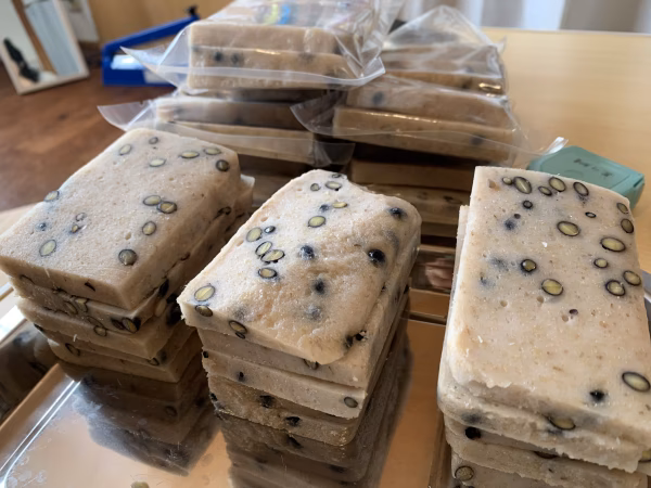 1袋4個入り(210g前後) 黒千石豆が加わり、より風味豊かな"ちょっと贅沢な"お餅です。 目安の賞味期限についてはお届けより2週間ほどに設定していますが、念のため10日間くらいで食べきっていただきたいです。 お米の旨みをしっかりと感じられる自然栽培玄米餅(1分づき)。お餅特有の伸びの良さだけではなく、しっかりとした弾力もあり、食べ応え満点です。 お汁物を加えていただくと、心身共に満足のいく献立になりますし、小腹がすいた時の軽食にもぴったりです。 まずは、こんがりと焼いて、お醤油をちょんとつけて食べてみてください。 お米の旨味が口いっぱいに広がって、しみじみと美味しさを味わえます。  また、お味噌・お塩などもよく合います。 お好みの味付けを見つけてみてください。 焼き以外にも、蒸したり、揚げたり、おすましに加えたりしても、食感・味わいが変わって楽しいです。 当菜園では精米の都合上、1分づきにした餅米でついたお餅を玄米餅と呼んでいます。 1分づき米とは、玄米の表面にキズをつける程度に精米したお米で、味・栄養は玄米と変わりません。 お米の旨味を存分に味わえる自然栽培玄米餅(1分づき)をどうぞ。