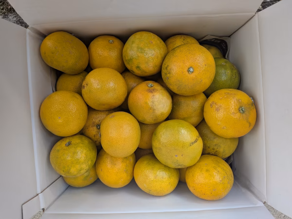 ほんとの最終になります たくさんのご購入有難うございます 一部皮が柔らかいや見た目個性的です 値下げさせていただきます たくさんの商品から、この商品を見て頂いて、有難うございます。ご家庭用約9〜10キロ(箱込)でご家庭用サイズM以上、黒ずみややけ、傷があります。 ご購入前に説明文をご一読宜しくお願い致します。      ↓ 一般のスーパーで売られている八朔とは、かなり違いますので、ご注意下さい。 ☆除草剤・防腐剤・ワックス未使用のため、見た目いまいちです。気になる方のご購入は、お控え下さい☆ ☆遠方の方は、特に配達期間がかかりますので、トラブル発生のリスクの可能性が高いです。ご理解宜しくお願い致します☆ ☆配達希望日は、対応できませんが、配達希望時間は対応可能です☆ ☆申し訳ございませんが、生もののため、ご注文後のキャンセルは、お受けできませんので、ご注意下さい☆ ☆みかんのリサイクル段ボールを使用しております☆ 日当たりがよく、水はけの良い土壌で 育っています☀️ 減農薬、除草剤、防腐剤、ワックス未使用なので、安心してお召し上がり頂けます。 ご家庭用になります。 八朔サイズM以上で、黒ずみややけ、傷で見た目はいまいちです。 そのことをご理解の上、ご購入お願いします。 中身は、爽やかな、すっきりしたうまみがあります。正規品と遜色ない味です。 八朔のぷりぷり感、みずみずしさ、さっぱりとした甘みをご堪能下さい。 涼しい場所であれば、1ヵ月以上もちます。 八朔特有のすっきりした甘みと酸味がありますが、徐々に酸味が抜けて、甘みが増します。 1月末頃には、さっぱりした甘みが増してきます いつも、買って頂いているご家族の娘さんが 食べず嫌いだったらしいのですが、食べて、甘くて美味しいと、はっさく購入して頂いています。 送料500円割引適応の商品になります 是非、この機会にご購入宜しくお願いします。