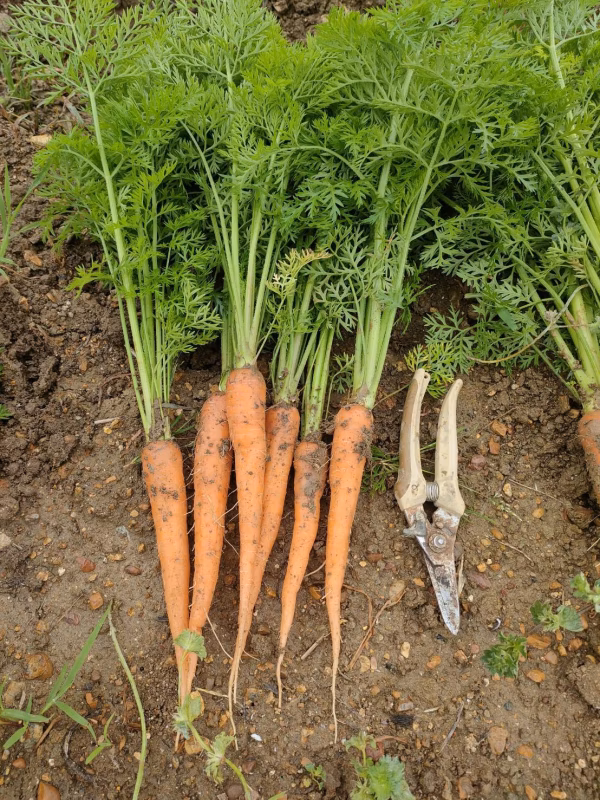 間引きした、小さめサイズのにんじんを60cmサイズのダンボールに入るだけ詰めて発送します。
