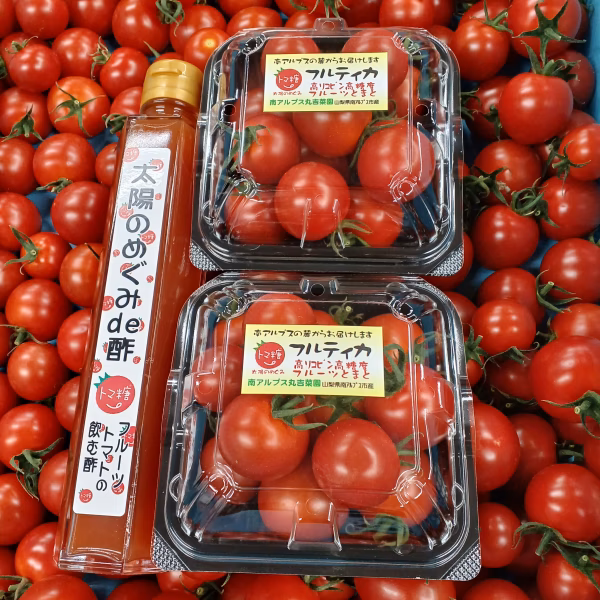 トマト酢とトマト果汁と粗糖だけで、甘味と酸味のバランスが良く、トマトを感じられるおいしい酢の飲料にしました。
