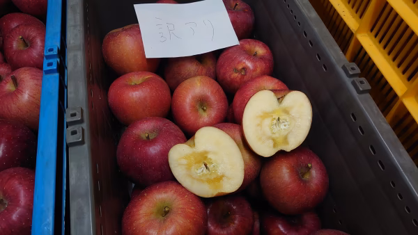 小さな傷あり、軸部や胴回りの裂果、日焼け、未熟果、小玉、不揃い等、凍結による軟質、変形果