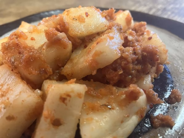 かぶの郷愁をそそる味わいと風来特製、イチからつくるキムチのタレとのマッチング。この味わいにするため かぶの切り方から試行錯誤してできました。
