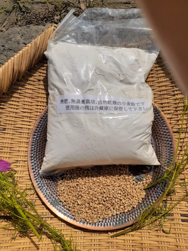 天日干しをして作った小麦粉と大豆です。