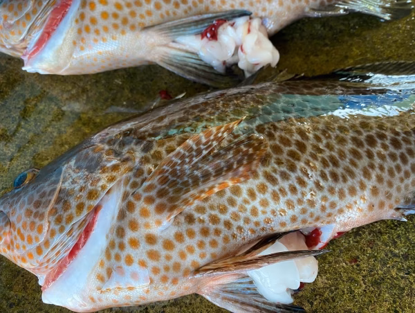 内臓脂肪を蓄えた1.6kのオオモンハタを一本釣りしてきましたので津本式処理、ウロコ取りを行った状態でご用意させて頂きました。