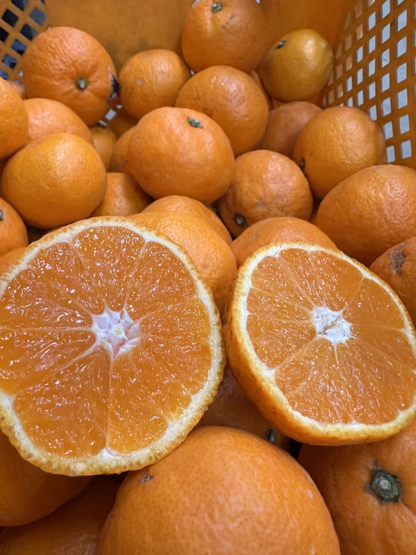 「木村早生(きむらわせ)」は、宮川早生の枝変わり(突然変異)から生まれた温州みかんの希少な早生品種で、熊本県天水町で発見されました。特徴は糖度が高く、果皮色が濃いオレンジ色で、酸味が少なく濃厚な甘さ、さらにプチプチとした独特の食感と風味が楽しめ、10月下旬から11月上旬に収穫される、早生の中でも甘みが強いタイプです。