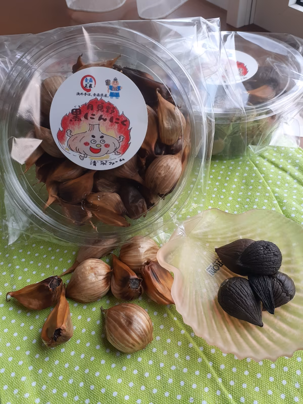 自家採取した有機にんにくを使用した黒ニンニクです。じっくりと保温熟成させニンニクの臭みは一切なくフルーティーな甘さに仕上がりました。