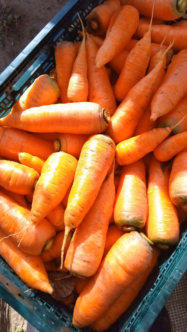 1年で一番冬のにんじんが甘くて味が濃い! 甘いだけに非ず みずみずしくジューシーで 野性味溢れ香り豊か😆 自然って美味しいの??? 冬のにんじんは、自家採種自然栽培の特徴がはっきりと伝わるお野菜ナンバーワン。きっと美味しい!と感じていただけると思います。是非是非お試しください。 たっぷり2㌔ 生食、サラダ、お漬物、ドレッシング にんじんスープ、ケーキ、煮物いかようにもお使いいただけます。 ・栽培方法 農薬不使用。肥料不使用。(動物性堆肥、米糠、油粕も不使用)。 ・種 自然栽培で20年以上自家採種をしていた種を譲り受けて、私の畑で3年目の自家採種になります。 **お届けの状態は、葉無しです**商品概要