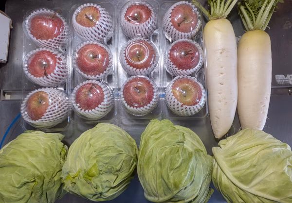 キャベツ2.5kg、ダイコン1.5kg、リンゴ2.2kgの詰め合わせ箱詰めです。端数の商品を詰め合わせしておりますので、現品限りの商品です。リンゴは小さいサイズで規格外です。 家庭用の調理、加工原料等にご利用ください。