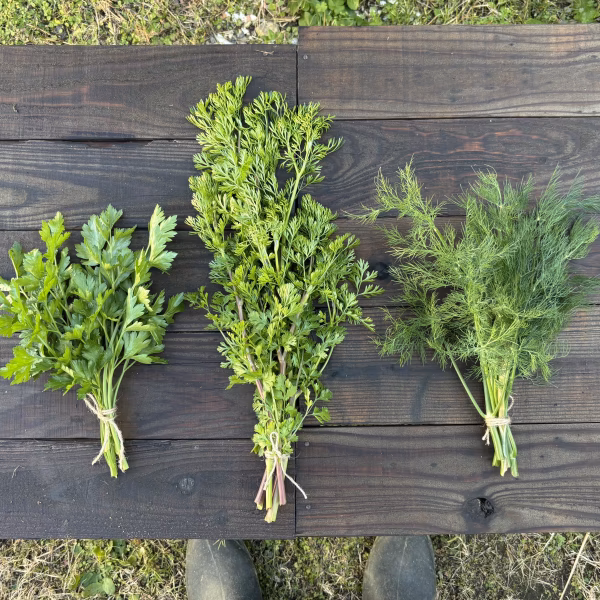 生のパクチー、ディル、イタリアンパセリを、