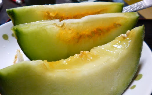 アンデスメロン同等のオーソドックスな青肉ネットメロン(中:薄い緑色)です。外観は、太めのネットが安定しており、日持ち性にすぐれ、サンプル試食では、糖度も安定しております。時期や保管状態、お客様のお好みによっても若干変わってきますが「食べ頃時期目安のカード」も同封しています。