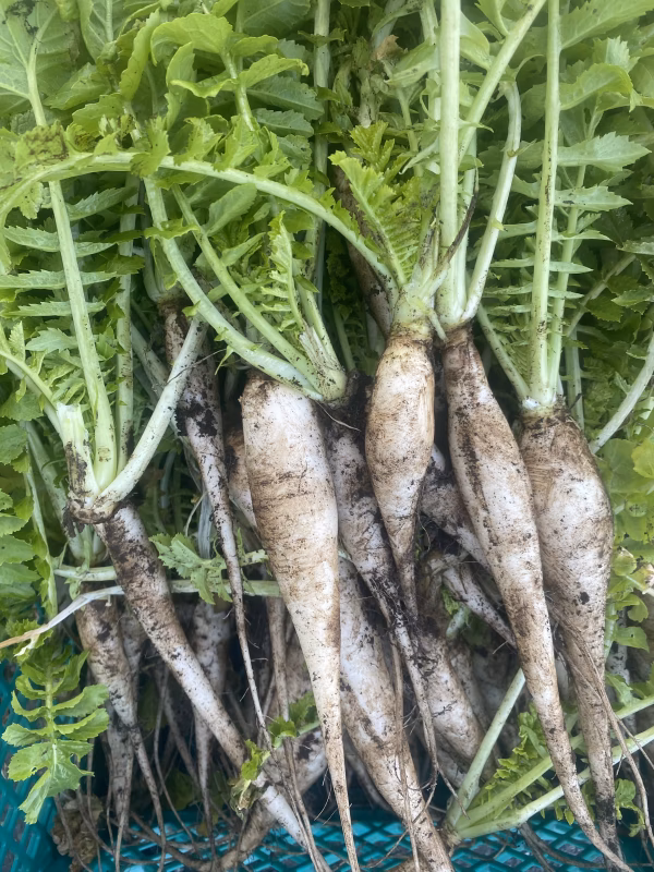 こんにちは。880農園です☺︎ 土作りからこだわり、農薬、化学肥料不使用のお野菜を育てています! ・葉付きミニ大根 ・農薬、化学肥料不使用 ・約1キロ ・土付き発送 ・堀りたて発送 大きさはバラバラです。 よろしくお願いします。