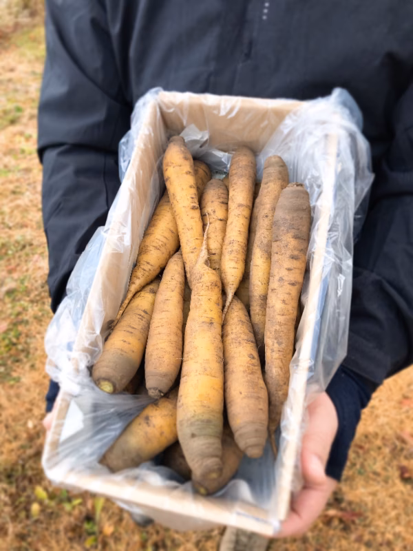 ▼商品概要 ・「金美人参」:外皮・果肉ともに鮮やかな黄金色(黄色)で、えぐみや青臭さが少なく、甘みが強いことが特徴です。黄色を活かした彩り用途でおせち料理・お正月料理に人気です(色味が映える) ▼品種・味の特徴 鮮やかな黄色の人参で、見た目の華やかさから料理の彩りに向いています。 肉質はやわらかく、えぐみが少ないため生食でも甘みを感じやすい品種です。 加熱するとさらに甘さが引き立ち、サラダやグラッセ、ポタージュなど幅広く使えます。 彩り良い料理に仕上がるため、年末年始の華やかな食卓に重宝されています。 ▼数量、分量の目安 訳あり・金美人参のB品2kg箱入り! 鮮度を保つため、土付きでの発送となります。 ▼栽培/生産方法、こだわり 農薬・化学肥料不使用 次世代に繋げていく、環境に配慮した持続可能な農業を実践しています! ▼注文に際しての注意点(配送方法や納期指定など) *商品の性質上、内容のご指定には沿いかねますのでご了承ください *日曜日は発送をお休みしております。 高山村ホームページURL https://vill.takayama.gunma.jp/