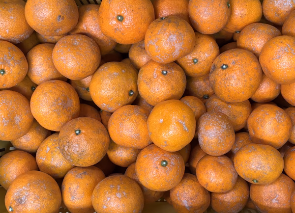 無農薬で、防腐剤やワックス、除草剤も使用していません。外皮にガサつきや黒点、スレキズなどあり見た目はきれいではないですが、皮を剥けば味はきれいなものと同じです。