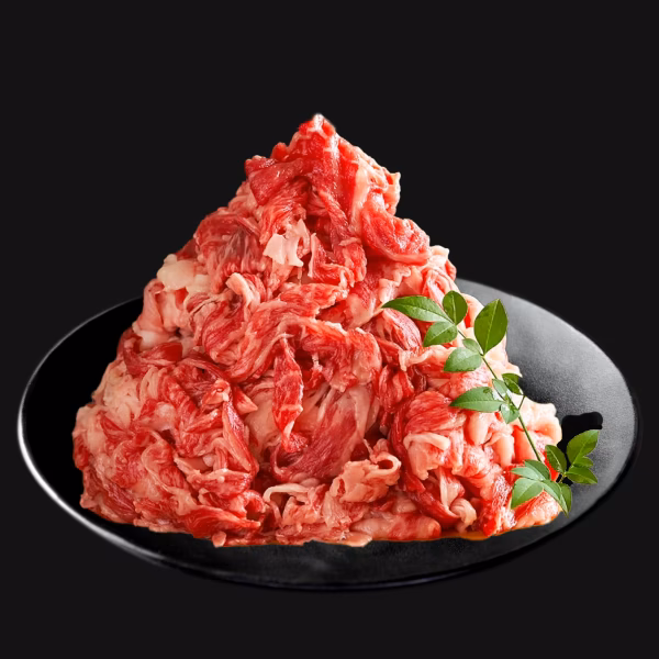 • 放牧黒毛和牛の八崎牛の熟成特上ロース切り落とし