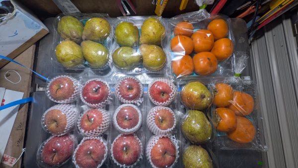 柿2.2kg、シルバーベル2.4kg、リンゴ2.5kg、ラ・フランス900gの詰め合わせです。柿は完熟して柔らかくなっております。洋ナシは、シルバーベル4個入り✕2パックとラ・フランス3個入り✕1パックです。いずれもキズ等があるB級品です。リンゴは、小さいサイズの着色不良等のB級品です。 年末年始のお得用商品ですので、価格はリーズナブルに設定しております。なお、売り切れ次第終了となりますのでご了承下さい。