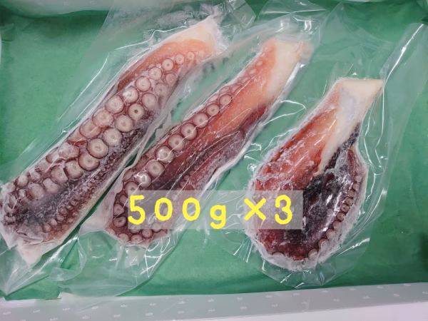 タコ箱漁で水揚げされたタコを即浜茹でし、真空パックをして急速冷凍しています。