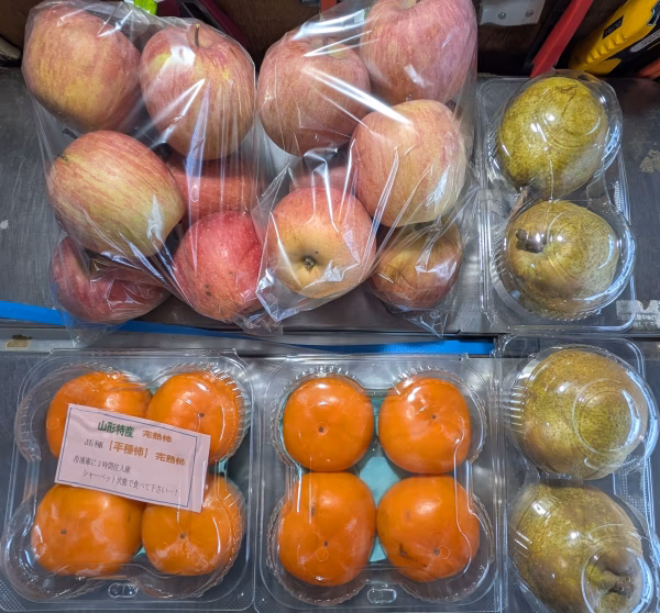 リンゴの品種は、ふじでキズや割れ、着色不良等のB級品です。