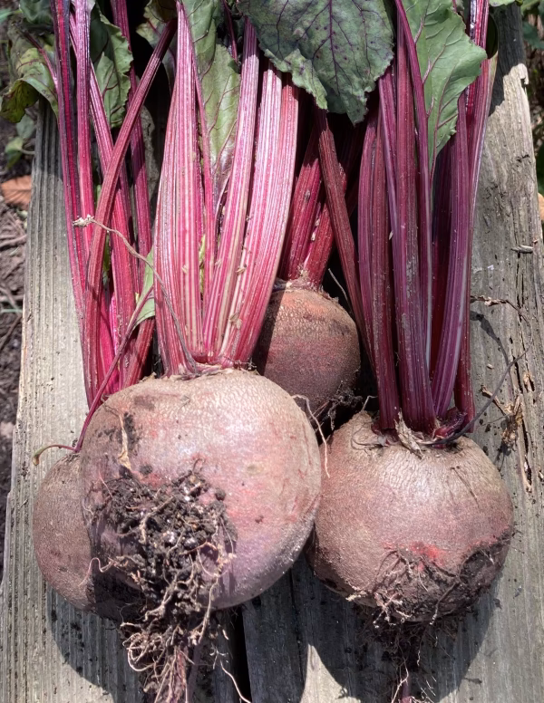 断面や葉柄、葉も鮮やかな赤紫色で、ビーツ独特の甘み、風味をお楽しみ頂けます。
