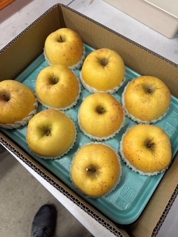 袋をかけずに栽培しているので、サビ果(表面がざらざら)や芽傷(風でリンゴの芽がプツッと刺さった後)などが入ることがあります。気になる方はご注文はご遠慮ください。