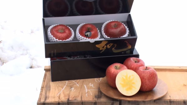 林檎の糖度だけでなく、このような蜜の入り方を狙って創り上げている『霜降り林檎』は人気を博しています。