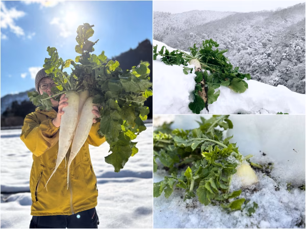 ▼「銀世界」、兵庫県香美町の厳冬の大地で育まれた「雪中大根」
