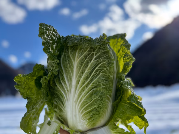 秋にしっかりと育った株を雪の下で熟成させることで、白菜は凍結を避けるため糖度を増し、驚くほどの甘さと柔らかさを纏います。