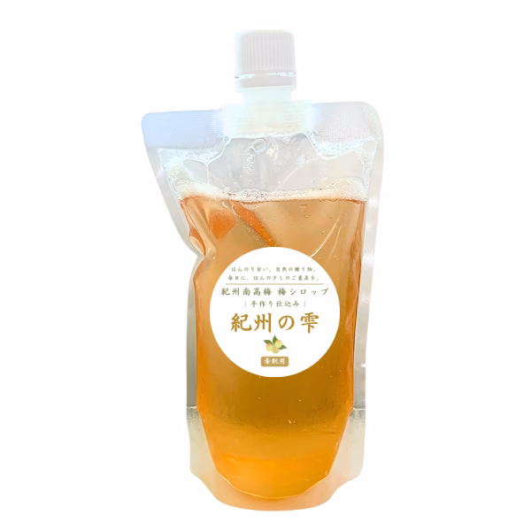 紀州完熟南高梅を使用。果汁が多く、やさしい酸味と自然な甘みが調和した、すっきりとした味わいの梅シロップです。