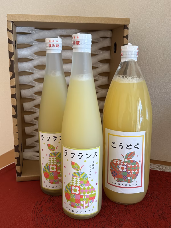 〈100%りんごジュース、ラフランスジュース〉