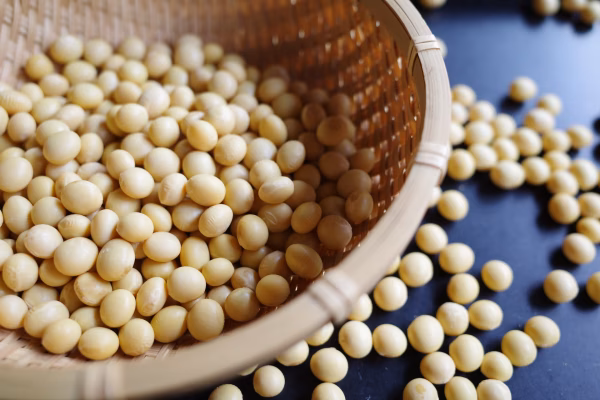 山形県鶴岡市羽黒町で育てた令和7年収穫の黄大豆「里のほほえみ」です。