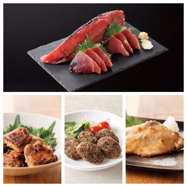 - 【品名】 ① 鉄分たっぷりFeメンチカツ ② 醤油麹漬けカツオトロ竜田揚げ ③ 塩麹漬け旬の魚のチーズ焼き ④ 醤油麹と甘酒漬け旬の魚の照り焼き