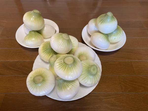 ご覧いただきありがとうございます! タマネギの名産地・淡路島のすぐ隣、徳島県の豊かな土壌で育てた**早生品種「ソニック」**をお届けします。 【当園のこだわり】 「安心な野菜を食べていただきたい」という思いから、慣行農法をベースにしつつも、化学肥料だけに頼らず、自然の力を活かした土作りにこだわりました。 鶏糞・有機石灰: 土に活力を与え、タマネギの旨味を引き出します。 籾殻燻炭: 土の微生物を活性化させ、根を強く健やかに育てました。 【品種の特徴:ソニック】 早生(わせ)品種であるソニックは、辛みが少なく、驚くほどみずみずしいのが特徴です。 生食が最高: ぜひ、まずはスライスして「オニオンサラダ」で食べてみてください。水にさらさなくても甘みを感じられます。 加熱でトロトロ: じっくり焼いたりスープにしたりすると、さらに甘みが際立ちます。 【配送・内容量】 内容量:4.5kg(個数の目安:12〜14個程度) (4.5kgと記載していますが、送料を押さえる為、箱込みで5kg以内、限界まで5kgに近づけて80サイズでお届けします。) 発送:鮮度を保つため、土を軽く落としてお届けします。 徳島の太陽と、こだわりの肥料で育った自慢のタマネギです。ぜひ旬の味をお楽しみください!