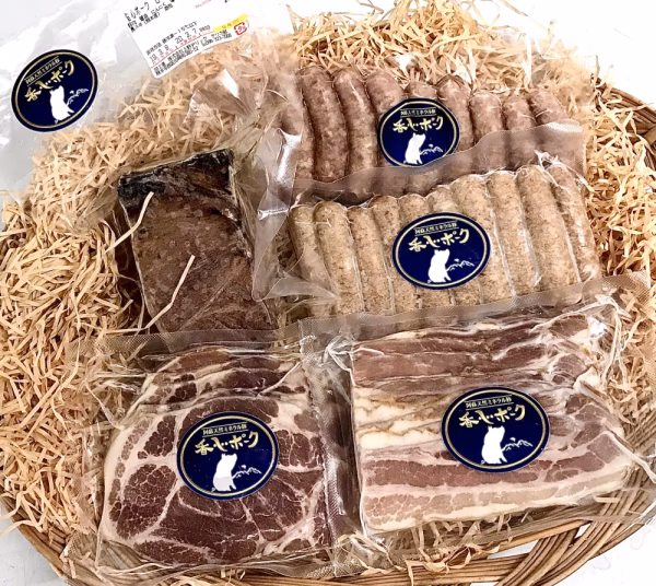 ボロニアソーセージ(230g)・(肩)ロースハムブロック(250g)・ベーコンブリック(250g)・炭火ローストポーク(250g)・炭火バラ串(6本)・炭火バラ.ハラミMIX串(3本⊕3本)等