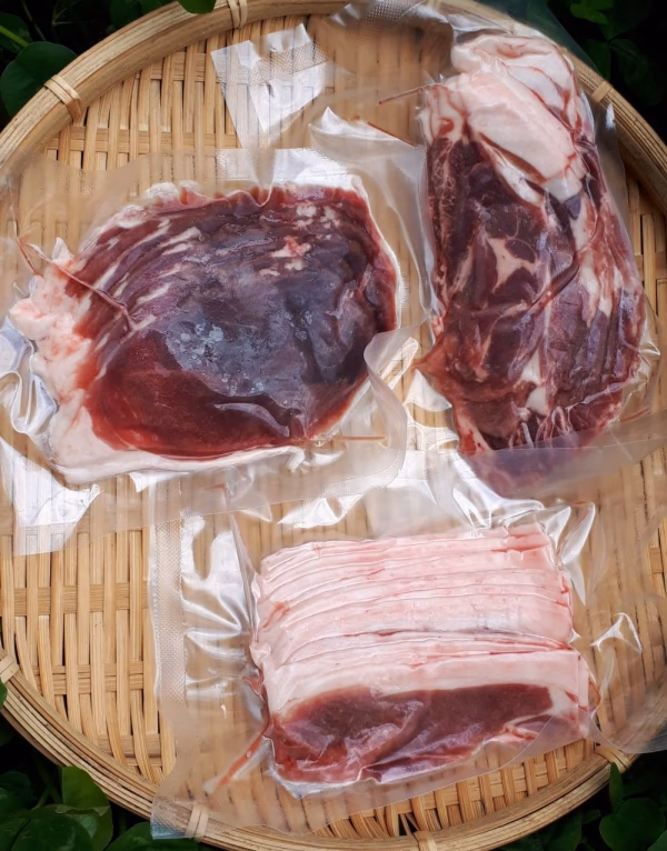 3種類の部位をご自宅のホットプレートやフライパンで焼くのに適した厚さにスライスし、使いやすく少量ずつ真空パックにしました。