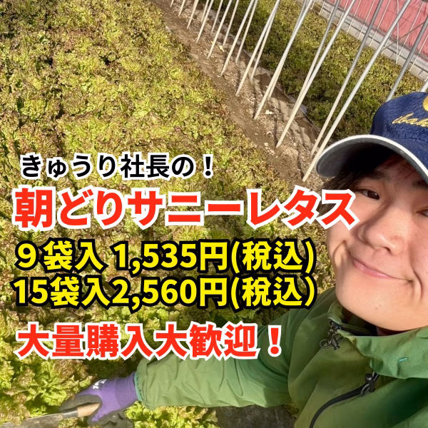 こんにちはきゅうり社長です!1月下旬より朝どりサニーレタスを期間数量限定で販売します。祖父、父、孫と半世紀以上の歴史をもつ埼玉県老舗農家のサニーレタスはみずみずしく霜に耐えた露地栽培!霜を浴びて甘みが増してます!