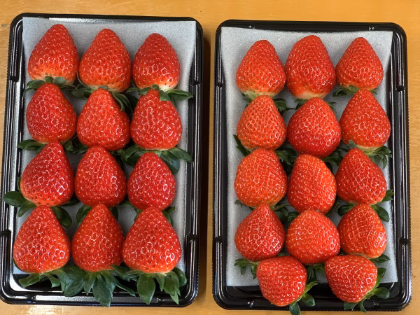 🍓「あまりん」「かおりん」の姉妹品種を食べ比べ! 埼玉県でしか生産できないオリジナル品種「あまりん」「かおりん」の2パック(各250gですので計500g) を食べ比べできる希少な商品となります。画像の左が「あまりん」、右が「かおりん」です。 強い甘みとジューシーな「あまりん」、豊かな香りと甘酸っぱい濃厚な味わい「かおりん」。朝採りした完熟いちごを厳選して大粒・中粒をキレイに並べたパック詰めでお届けします。 🍓肥沃な粘土質の土壌 いちご栽培が有名な埼玉県川島町。この肥沃な粘土質の土壌に有機質たい肥をたっぷり混ぜて作ったいちごは、濃厚で甘い苺になります。 🍓濃厚な完熟いちご どらちゃん農園のいちごは、ぎりぎりまで苗につけておき、いちごが一番おいしい状態、つまり完熟の状態で収穫した「完熟いちご」だということ!完熟いちごは糖度が高いのが特徴。日持ちを重視する一般のいちごでは味わえない特別なおいしさです。 🍓いちごの品種・粒数 品種は「あまりん」と「かおりん」です。 1パック8粒~15粒になります。粒数はお選びいただけません。 🍓お届け形態 厳選した完熟いちごをキレイに並べてパック詰めした状態で、配送中の揺れにも耐えられるように箱の上部をプチプチでやさしくおおってお届けします。 🍓お届けまでの日程 ご注文いただいてからなるべく早くお届けする事を心がけておりますが、天候によっては完熟いちごが十分に実らない事もあり、発送まで2日~2週間程度の期間をいただきます。 ※大変申し訳ございません。「あまりん」「かおりん」を含む商品は”お届け日指定なし”とさせていただきます<(_ _)>