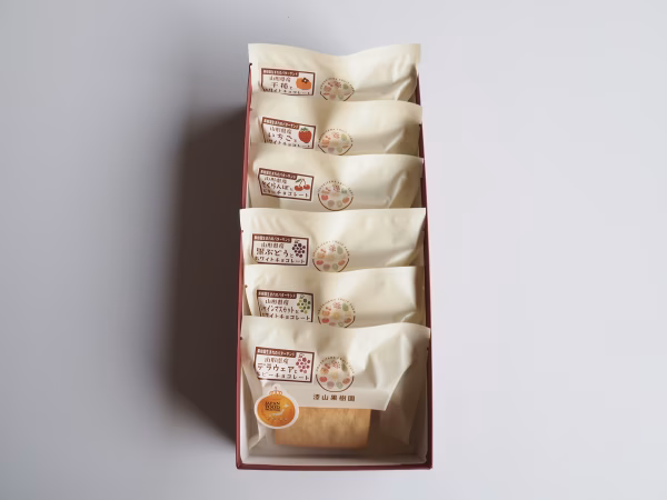 - メイン原材料:バター 産地:北海道 ぶどう3種(デラウェア・シャインマスカット・黒玉ぶどう)→小麦粉、チョコレート、砂糖、アーモンドプードル、卵、ぶどう(山形県産)、ラム酒、塩 柿→小麦粉、チョコレート、砂糖、アーモンドプードル、卵、柿(山形県産)、ラム酒、塩 いちご→小麦粉、チョコレート、砂糖、ココアバター、全粒粉、いちご(山形県産)、アーモンドプードル、卵、塩、カカオパウダー、レシチン、香料、(一部に乳成分、小麦、大豆、アーモンド含む)