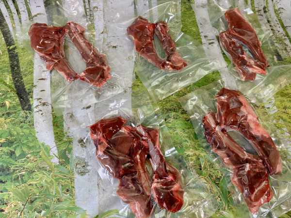 脂身の多いイノシシに比べ、高たんぱく・低脂肪・低カロリー、赤身の持つ濃厚なうま味、モチモチとした噛み応え、ビタミンB群が多く女性にはもってこいのジビエです。しっかり焼いてお楽しみください。