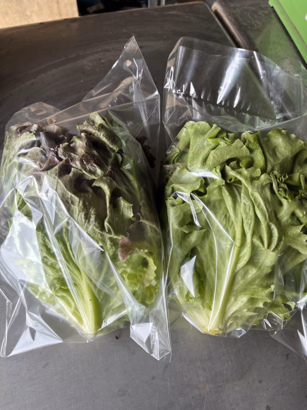 富山県南砺市の野菜農家ログログファームのリーフレタスを緑と赤の2色セットでお届けいたします!サラダをモリモリ食べたい方に♪2色のレタスで華やかさアップさせたい方に♪雪国富山の厳しい寒さの中、ハウスの中でゆっくりじっくり育った1個250g前後のリーフレタスです。葉先は柔らかく、株元はシャキシャキした食感が楽しめます。