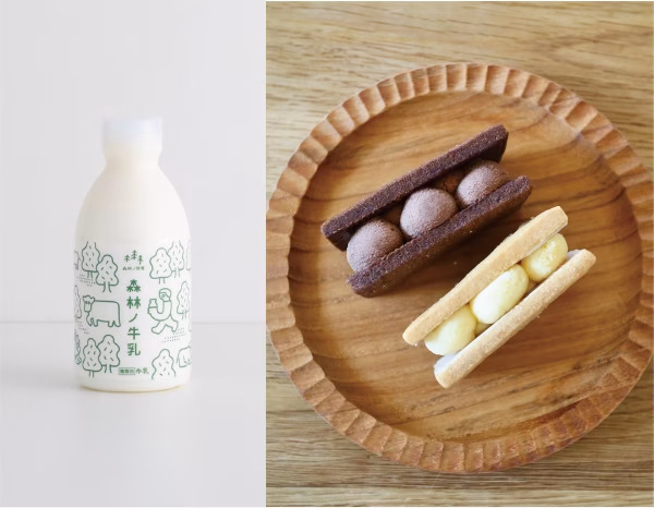 - 〈食品表示〉 ●森林牛乳 【原材料名】生乳100% 【栄養成分表示(100mlあたり)】 エネルギー 77kcal、たんぱく質 4.1g、脂質 4.9g、炭水化物 4.2g、食塩相当量 0.1g ●塩バターサンド 【原材料名】発酵バター(森林ノ発酵バター含む)、国産小麦粉、砂糖、卵、アーモンドパウダー、ホワイトチョコレート、ゲランド塩 【栄養成分表示(1個あたり)】エネルギー192kcal/たんぱく質1.9g/脂質12.9g/炭水化物18.6g/食塩相当量0.3g ※推定値 ●ショコラバターサンド 【原材料名】クーベルチュールチョコレート、国産小麦粉、発酵バター(森林ノ発酵バター含む)、生クリーム、砂糖、アーモンドパウダー、卵、カカオパウダー、牛乳、ゲランド塩、ベーキングパウダー(アルミニウムフリー) 【栄養成分表示(1個あたり)】エネルギー214kcal/たんぱく質2.6g/脂質15.7g/炭水化物17.1g/食塩相当量0.3g ※推定値