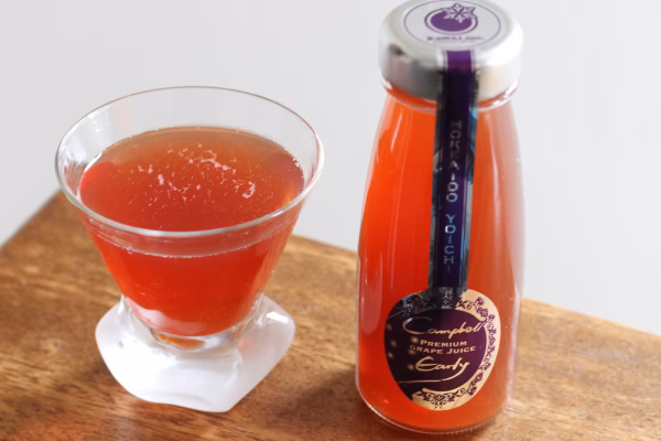 通常よりも遅摘みした黒ぶどう「キャンベル・アーリー」を使用。ワインのような味わいですが甘くまろやか。芳醇な大人のジュースです