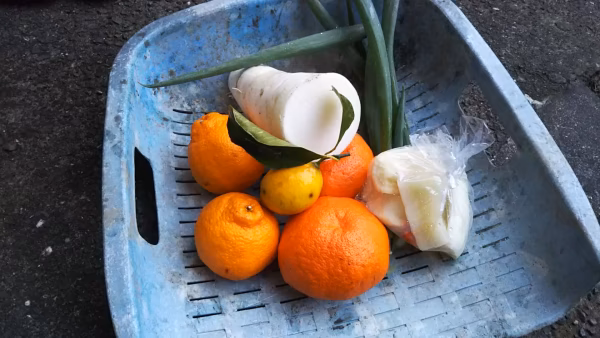 愛媛で開発され、愛媛でしか生産されていない、高級柑橘 「甘平かんぺい」をより手軽に食べていただけるよう、でこぽん、野菜(大根、ネギ、大根漬け物など)とセットにしたお得な商品です。
