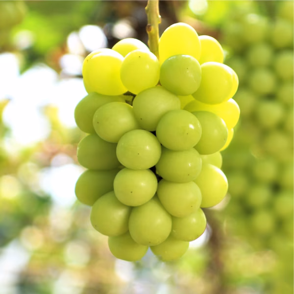 🍇シャインマスカットはとても甘く、口の中でマスカットの心地よい香りが広がります。皮ごと食べられるので、人気のブドウです。