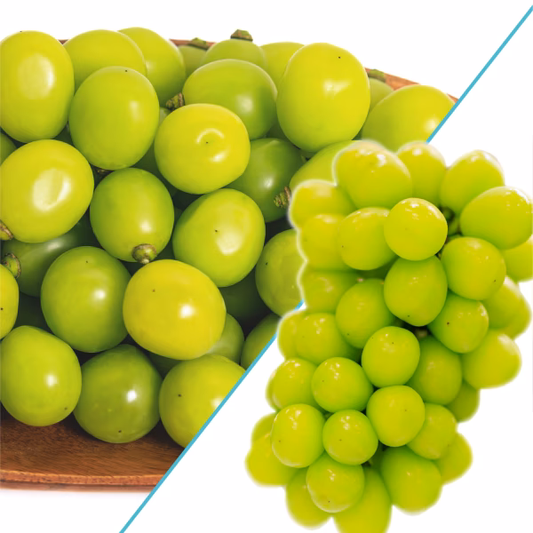 🍇シャインマスカットは、とても甘く、口の中でマスカットの心地よい香りが広がります。皮ごと食べられるので、人気のブドウです。