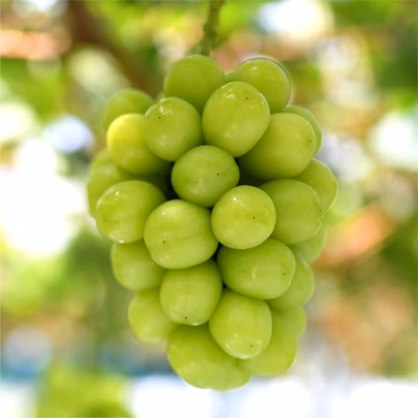 🍇シャインマスカットは、とても甘く、口の中でマスカットの心地よい香りが広がります。皮ごと食べられるので、人気のブドウです。