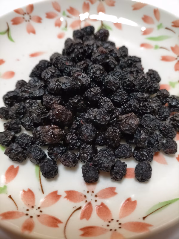 こちらのセミドライアロニアはカリカリに乾燥させてたものではなく、乾燥時間を短くしてやわらかめに乾燥しました。(アロニアの粒の大小の大きさの違いにより若干乾燥具合が異なる粒もございます。)