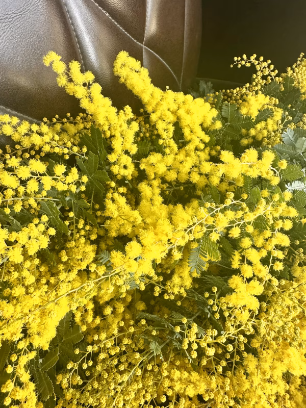 ※ミモザは蕾の状態でお届けしています。暖かいお部屋(18℃以上)で飾っていただくと、ゆっくりと黄色のふわふわに開いていきます。乾燥が苦手なお花ですので、エアコンの風が直接当たらない場所でお楽しみください。