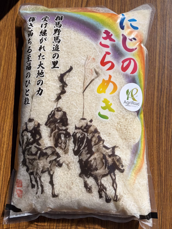 お米の袋のデザインは、福島県相馬地方の伝統的な祭事【相馬野馬追】をイメージしたものになっております。