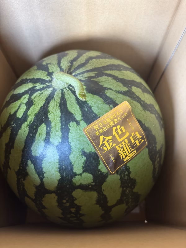 苗作りから全て自作の西瓜です。バーク(樹皮)と米糠を主原料とした堆肥を使用し、除草剤不使用の畑地で栽培しています。ハウス作成後に、ハウスを3週間以上完全密閉し、緑マルチ内の温度を60度程に保ち、土壌の衛生と地温確保に努めました。玉の返し作業は全て手作業で行っており、敷き皿は一切使用していません。日本蜜蜂を守る為に、受粉作業に西洋蜜蜂は一切使用しておりません。西瓜共進会では千葉県知事賞など受賞履歴多数ございます。
