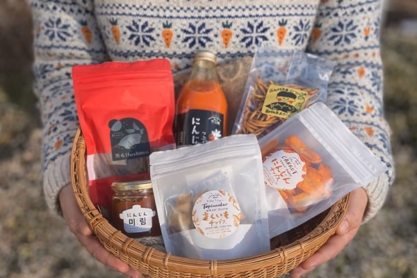 - ①桜薫る干し芋180g 原材料名:さつまいも(高山村産) ②京くれない人参ジュース1ℓ 原材料名:人参(高山村産)、レモン(国産) ③人参チップス(ココナッツオイル使用) 原材料名:人参(高山村産)、ココナッツオイル ④菊芋チップス(ココナッツオイル使用) 原材料名:菊芋(高山村産)、ココナッツオイル、食塩(海塩) ⑤さつまいもかりんとう 原材料名:さつまいも(高山村産)、砂糖(サトウキビ(種子島産))、食用米油(国内製造) ⑥人参ジャム 原材料名:人参(高山村産)、素焚糖/クエン酸、酸化防止剤(ビタミンC)