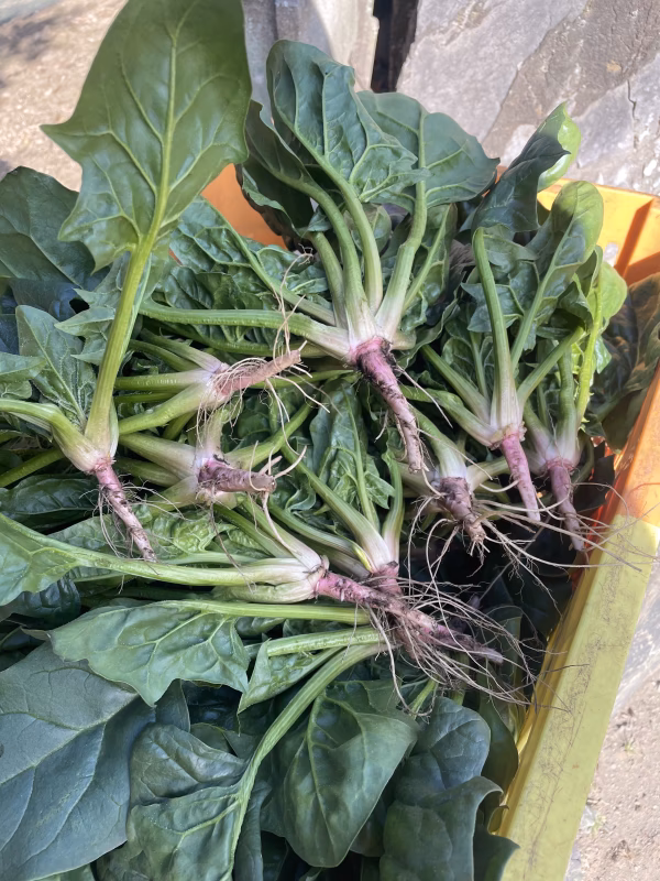 化学的な肥料は一切使用せず有機質のボカシ肥料や糖蜜を使用し栽培したエグ味の少ない濃厚なほうれん草です。